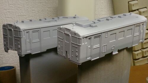 どうも(*´∀`)♪間が空いてしまいましたが前回の続きです。と言っても塗装だけですが… 塗装手順としてはミスターカラーのグレーサフ1200番→Mr.クールホワイト→ルマンクリーン→スージーブルー→ブラックの順に塗装。 基本的には塗るだけですが、塗り方にちょっと…